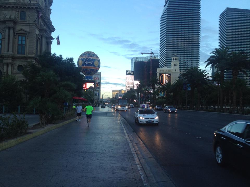 The strip has morphed over the last decade or so to allow for all of the pedestrian traffic to never have to stop for a stoplight. All you have to do is go hit the escalator and take the sky bridge. What this means for runners is that you can do between 3 – 10 miles on the strip easily without ever having to wait for a stoplight to change and you get the challenge of constantly running stairs. However you have to do this one early in the morning and not just to avoid the heat and crowds. No, the people watching provided by the strip in the early morning hours cannot be matched anywhere else. Where else in the world can you see folks who are stumbling home from a night out, workers heading home from all kinds of professions and the families heading out with their kids to show them the sights? There is no better people watching in the world.