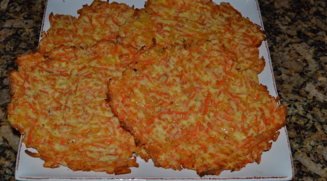 6. Spread carrot mixture into approximately 6 inch round ‘tortillas’ that are approximately 1/4 inch think (Note: these don’t rise or spread at all during cooking so however you spread them is pretty much how they will come out).